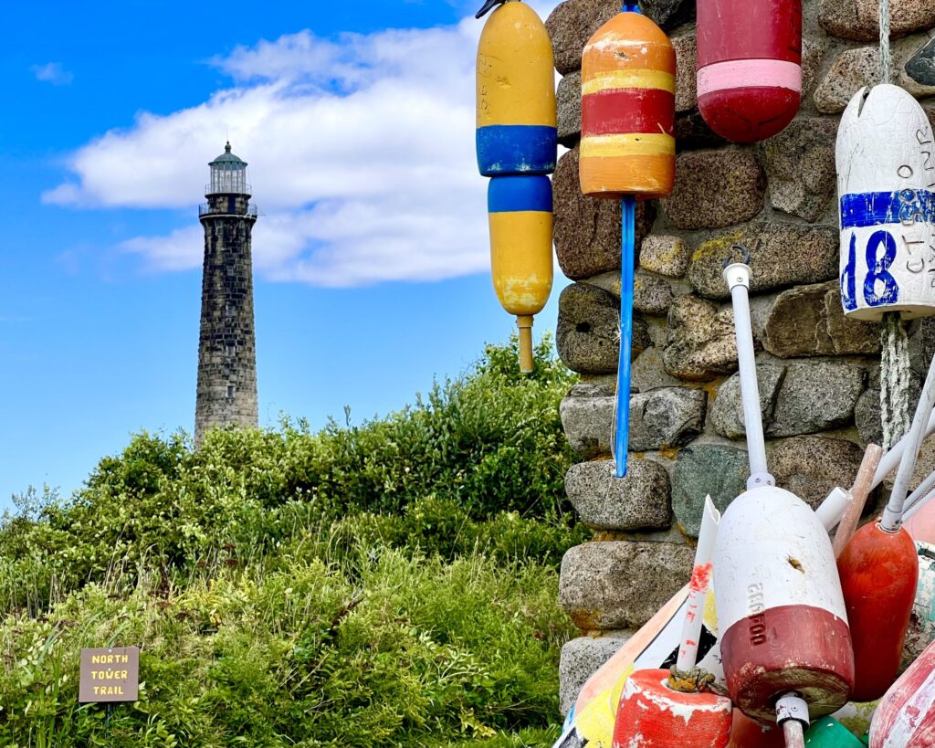 Lighthouses and their islands may be perceived as black and white silhouettes against flashes of lightning. And yet, pockets of color can be found, and stand out all the more against the gray.